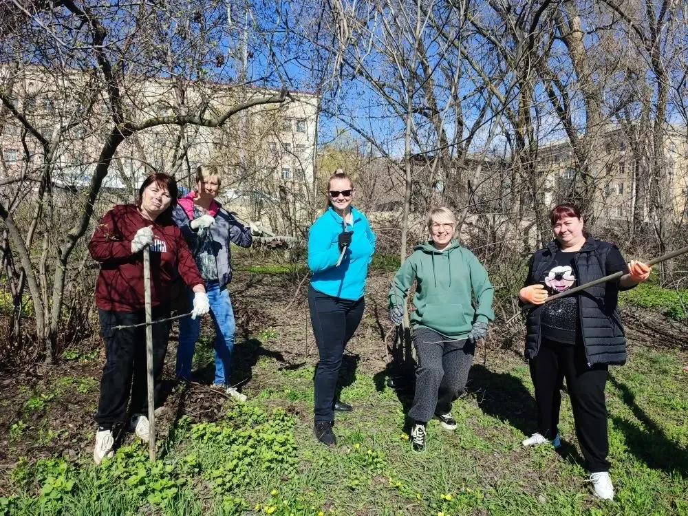 Основной фронт работ развернулся на нескольких ключевых участках. Дружные «трудовые десанты» сотрудников дошкольных образовательных учреждений района и Гимназии № 13 провели масштабную уборку территории парковой зоны, расположенной вдоль трамвайных путей и трамвайного кольца. Участники очистили газоны от прошлогодней листвы и мусора, подготовив территорию к весеннему цветению.